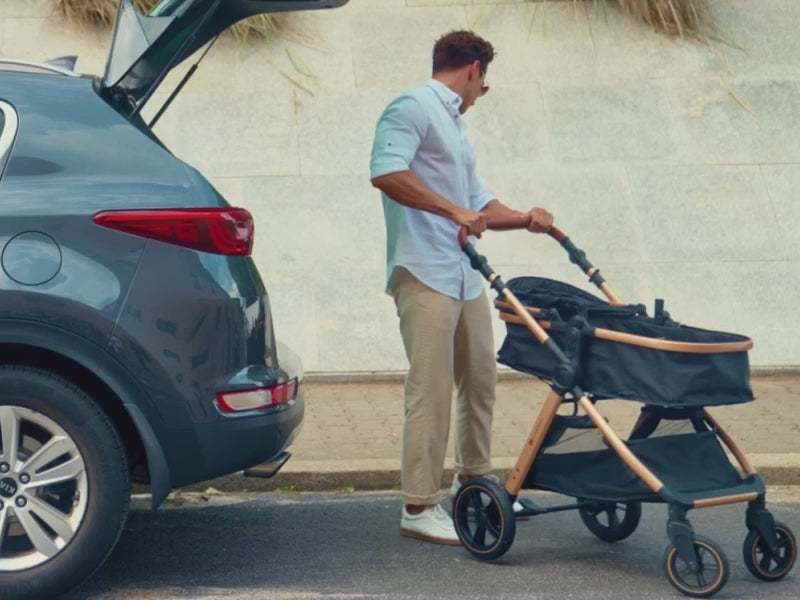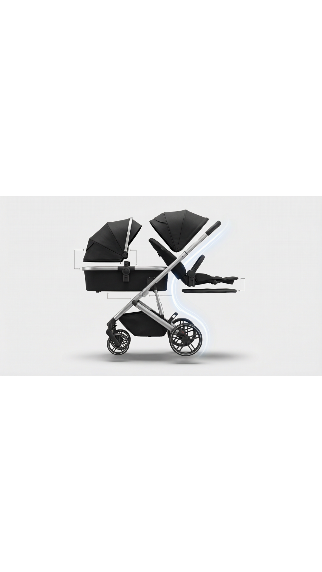 Auto-Verrouillage : Une fois le cycle de gravité terminé, la poussette se sécurise automatiquement en position compacte.